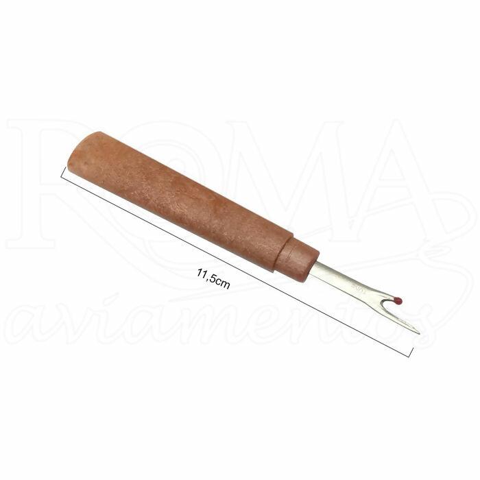 Abridor de caseados, grande, utilizado como faca para abrir casas de botão, desmanchar costuras e alinhavos, fazer pequenos furos no tecido. Também chamado de descosturador.