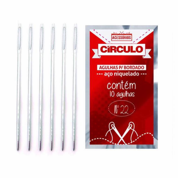 Compostas por aço inoxidável e disponíveis em dois tamanhos: nº 22, nº e 24 . A agulha de bordado número 24 é indicada para ponto cruz, ponto livre (com fios finos ou poucos cabos), e no número 22 para vagonite e bordado livre com fios mais grossos.