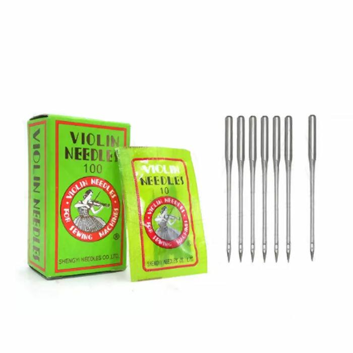 Aqui na Roma Aviamentos você encontra agulha reta da Violin, são usadas em tecidos como seda, lycra e malha fina; a 14 é a mais indicada para popeline, ideal, então, para patchwork; e a 16, 18 e 21 são para tecidos pesados, como jeans e sarja.