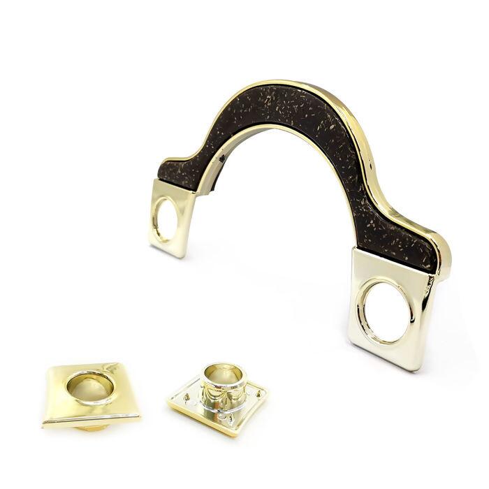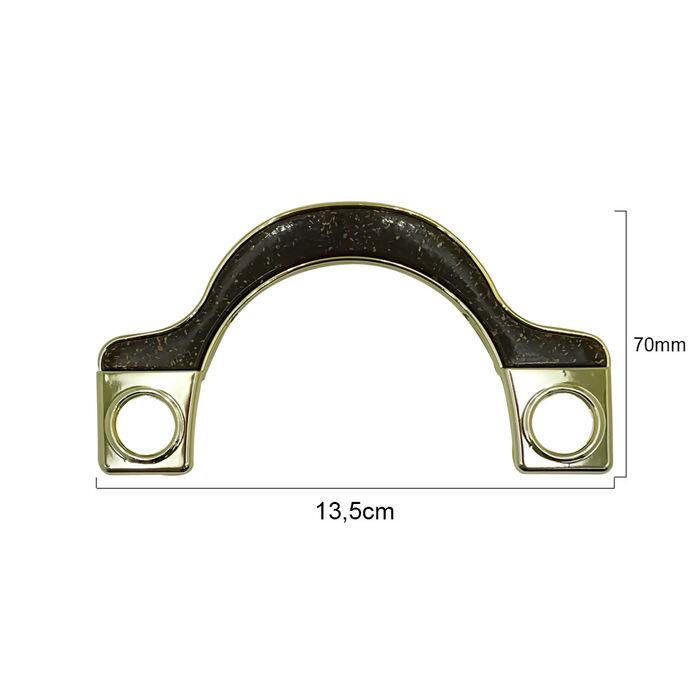 Descrição Alça de Bolsa - 2 unidades - 70mm x 13,5cm - Dourado/ Imbuia 377 - 7700