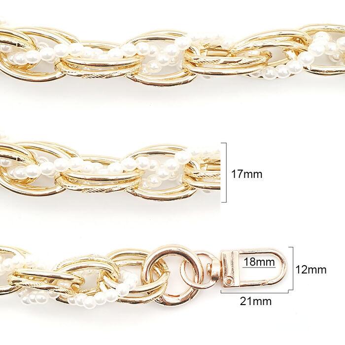 Detalhe Alça de Bolsa Corrente com Pérola - 1 unidade - 28cm - Dourado - RO.153133