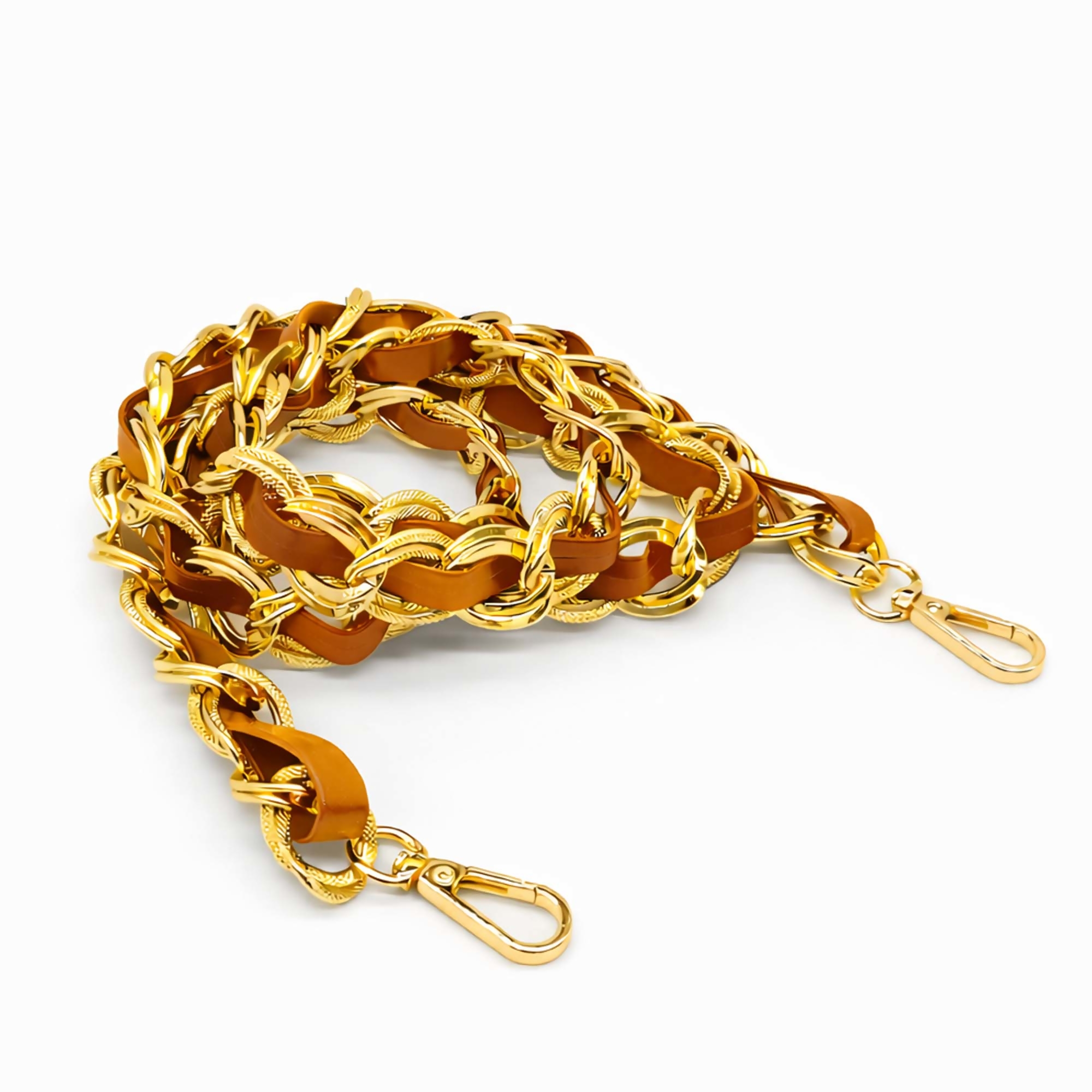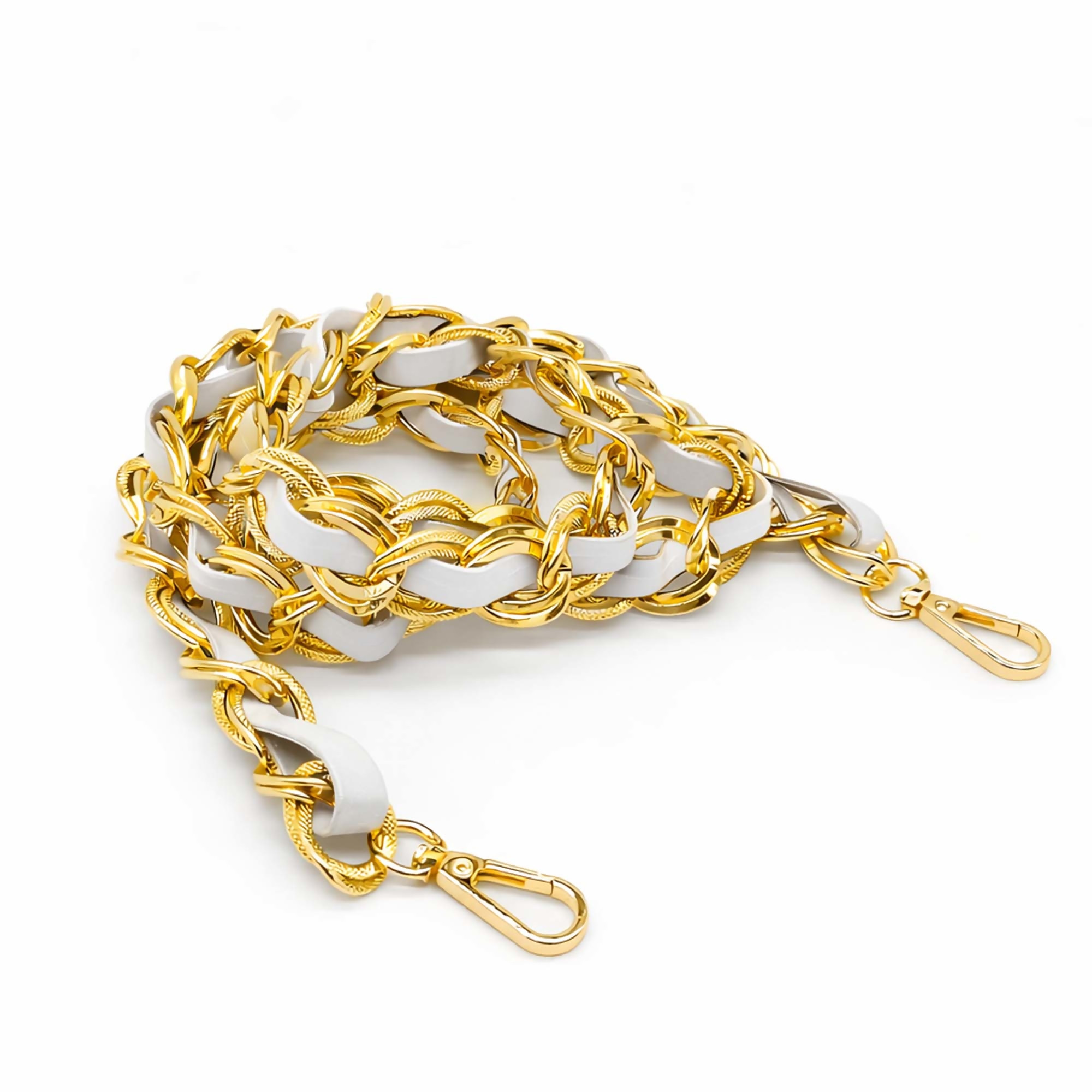 Ideal para bolsas femininas, carteiras, pochetes e clutchs. Basta encaixar o mosquetão nas argolas da bolsa para renovar o modelo de forma rápida e prática.