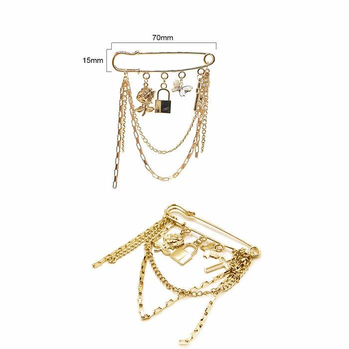 Descrição Alfinete de segurança Decorado com corrente - 15mm x 70mm - Dourado - RO.151518