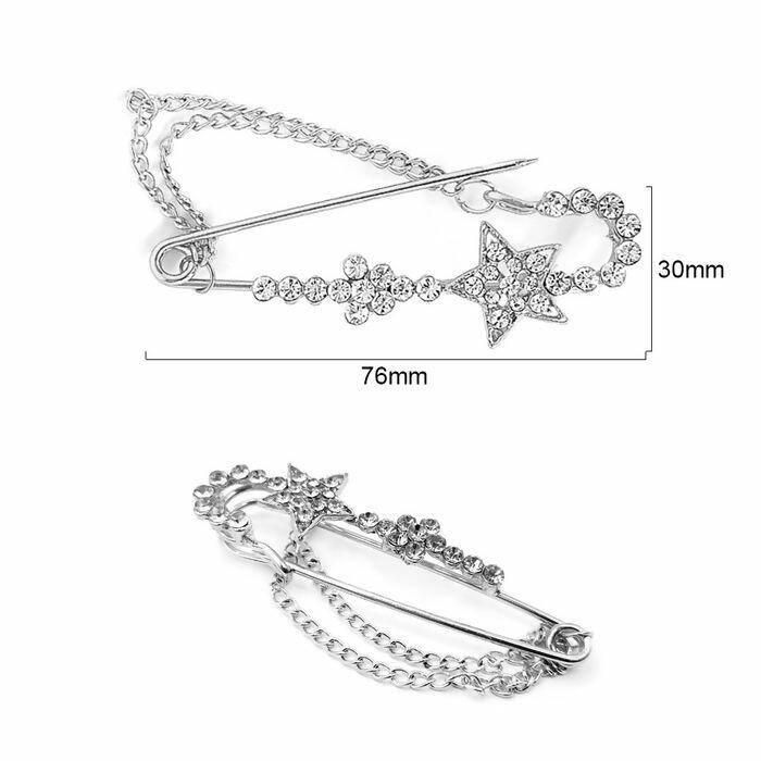 Alfinete de segurança Decorado com Strass - Estrela - 30mm x 76mm - Níquel - RO.151478