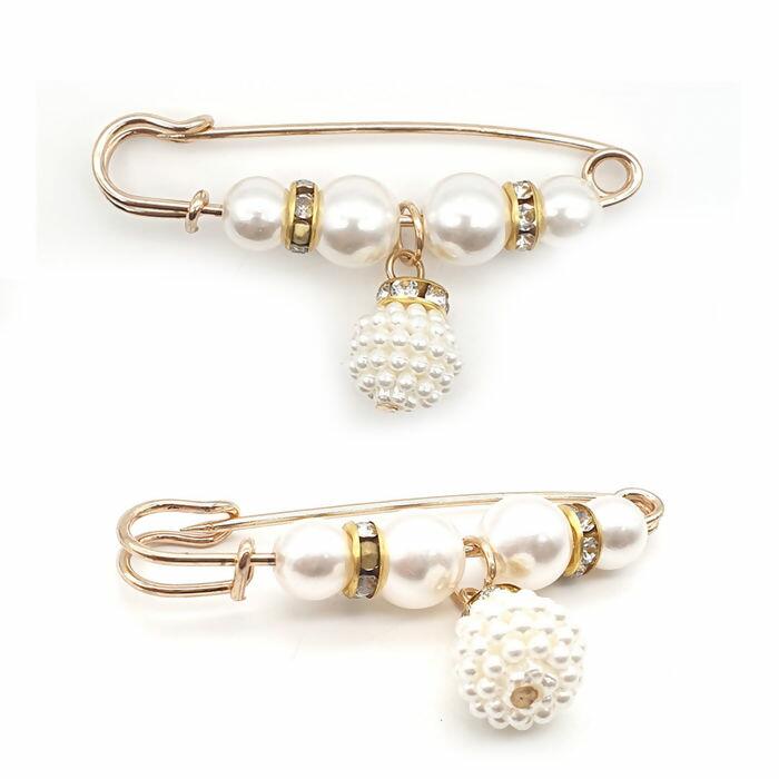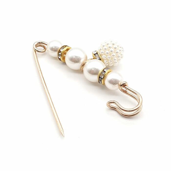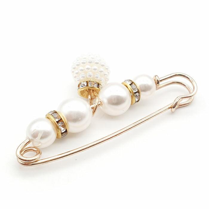 Descrição Alfinete Decorado - Branco - 57mm x 18mm - Dourado - RO.152877