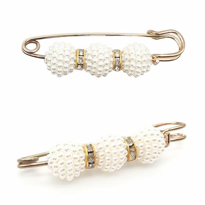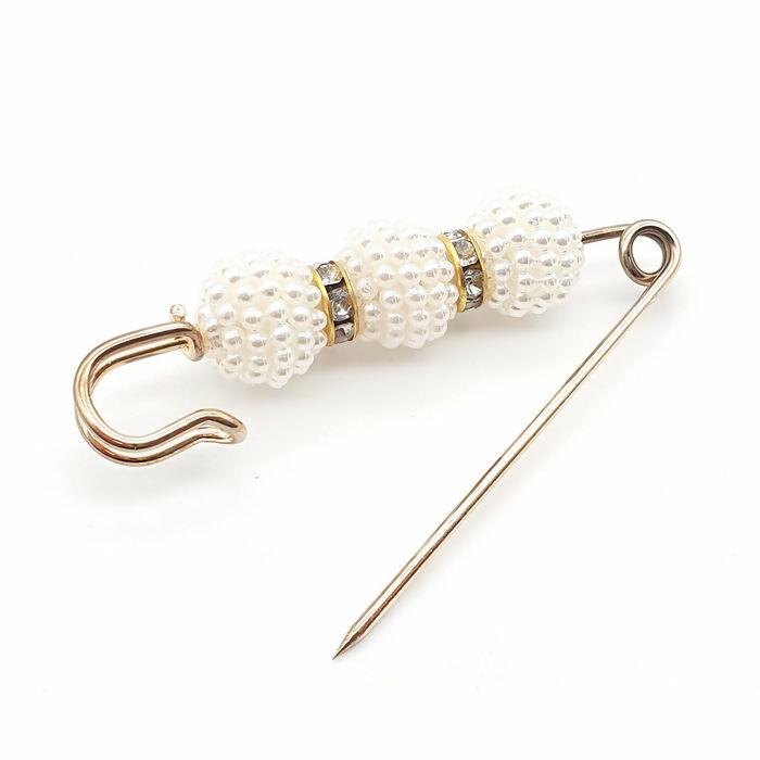 Descrição Alfinete Decorado - Branco - 57mm x 18mm - Dourado - RO.152878