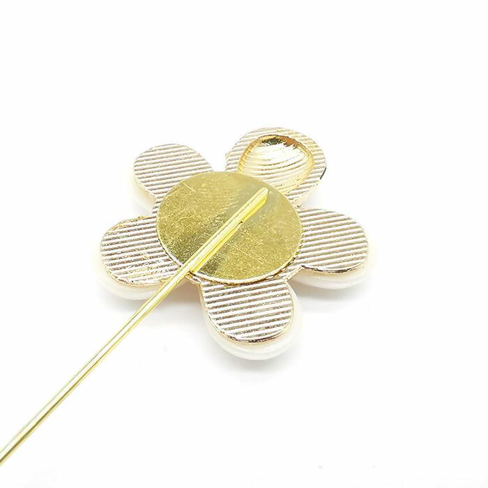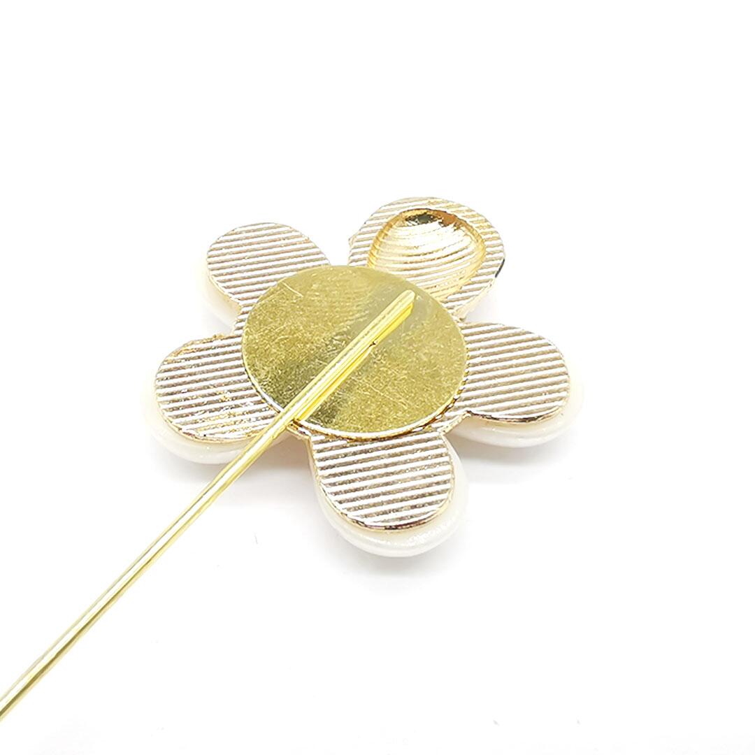 Alfinete Decorado com Pérola e Strass Flor 7,5cm 5 unidades Dourado RO.153814