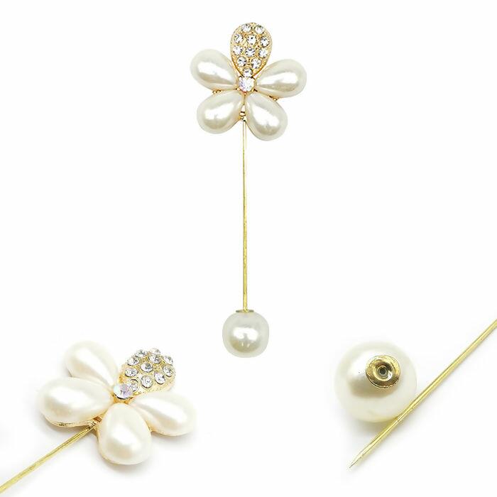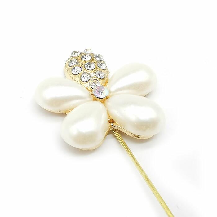 Descrição Alfinete Decorado com Pérola e Strass Flor 7,5cm 5 unidades Dourado RO.153814