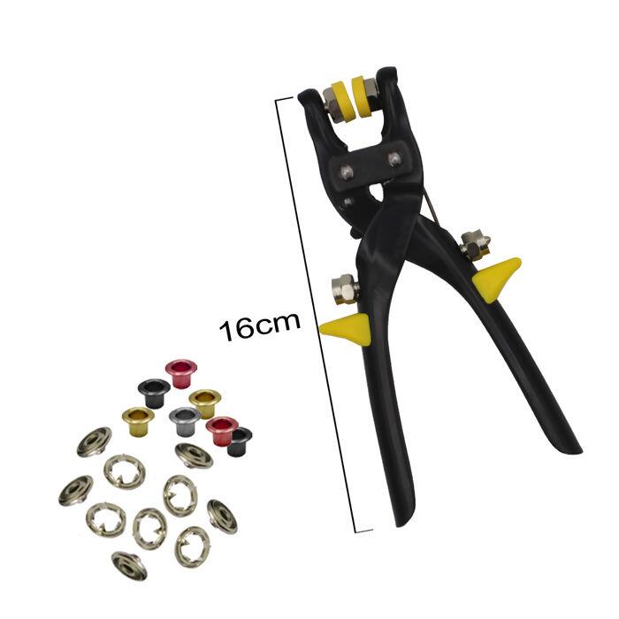 Excelente Ferramenta Para Pregar Ilhós e Botões, Leve, Pratico e de Fácil Manuseio, os Detalhes em Amarelo no Corpo do Alicate Permite uma Melhor Empunhadura e Não Permite que a Mão deslize, Dando Maior Precisão e Segurança. Pode ser usado em Jeans, Couro, Tecidos, Jaquetas, Tênis, Plástico, Courvin, E.V.A entre outros. ( Não recomendado para tecido grosso).