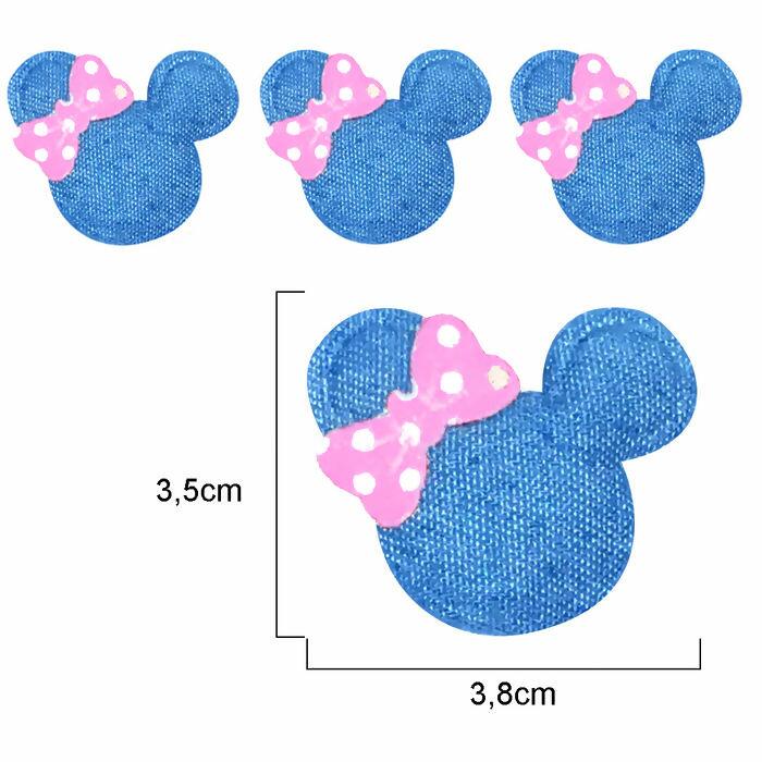 Aplique - 20 unidades - Azul / Rosa - 3,5cm x 3,8cm - RO.150188 minnie