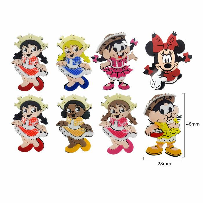Aqui na Roma Aviamentos você encontra aplique acrílico com o tema Meninas Caipiras, ideal para laços, pingentes, porta ácool e muito mais. Possui base reta e de fácil colagem. Explore sua imaginação para confeccionar lindos artesanatos para a Festa Junina.