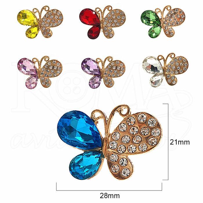 Descrição Aplique de metal borboleta com pedraria - Princess - 20 unidades - 28mm x 21mm - RO.151307