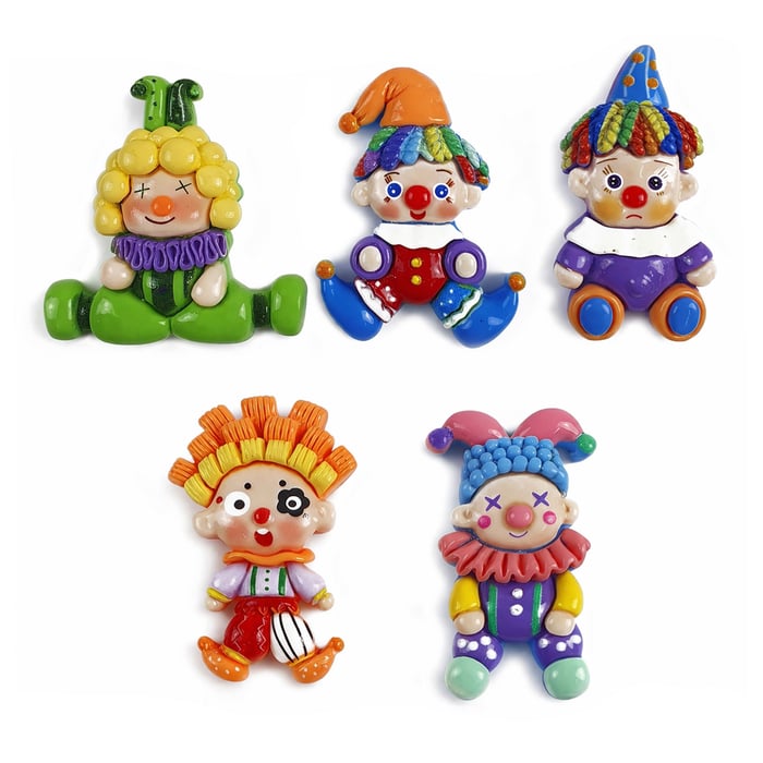 Aplique de Resina Palhaços Sortidos 5,5cm – 20 Unidades 100% Resina