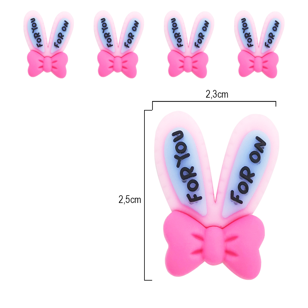 Descrição Aplique de Silicone - Orelhinhas Coelho - pacote com 20 unidades - RO.150419