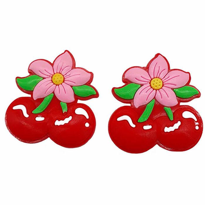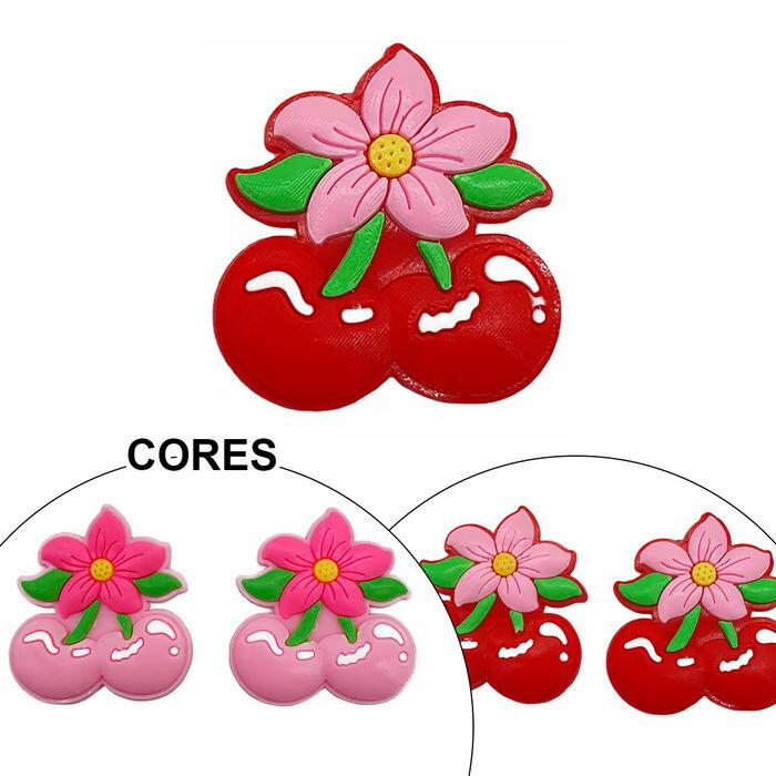 Descrição Aplique Emborrachado Cereja com Flor 30mm x 32mm RO.155524