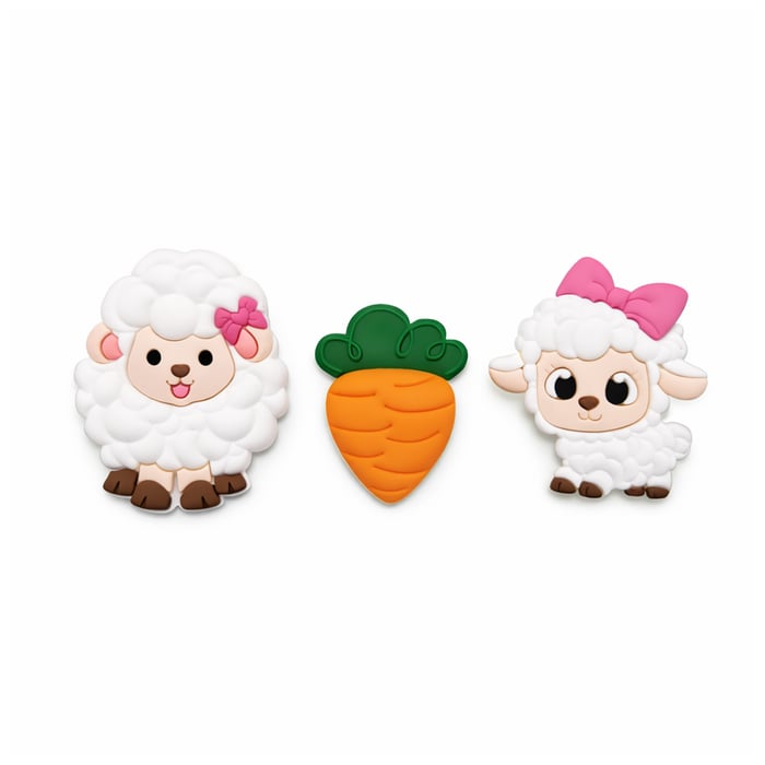 Aplique Emborrachado Ovelhas e Cenouras Sortido 37mm x 45mm – 100% Silicone
