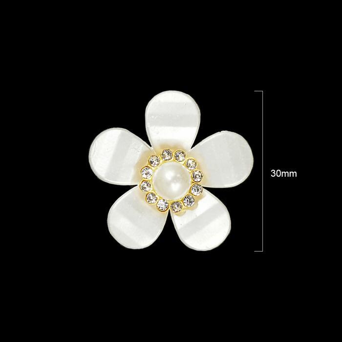 Aplique Flor Strass com Pérola Princess - 30mm - Branco - RO.153646