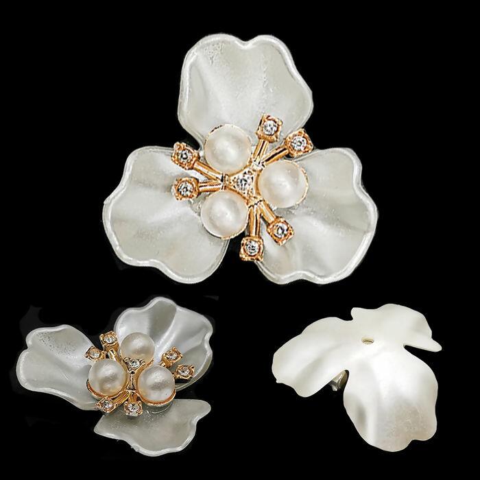 Descrição Aplique Flor Strass com Pérola Princess - 38mm - Branco - RO.153647