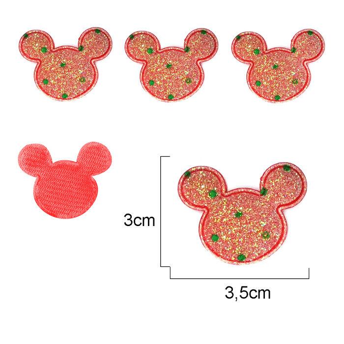 Descrição Aplique glitter - 20 unidades - Orelhinhas - Vermelho + Poá verde - 020125