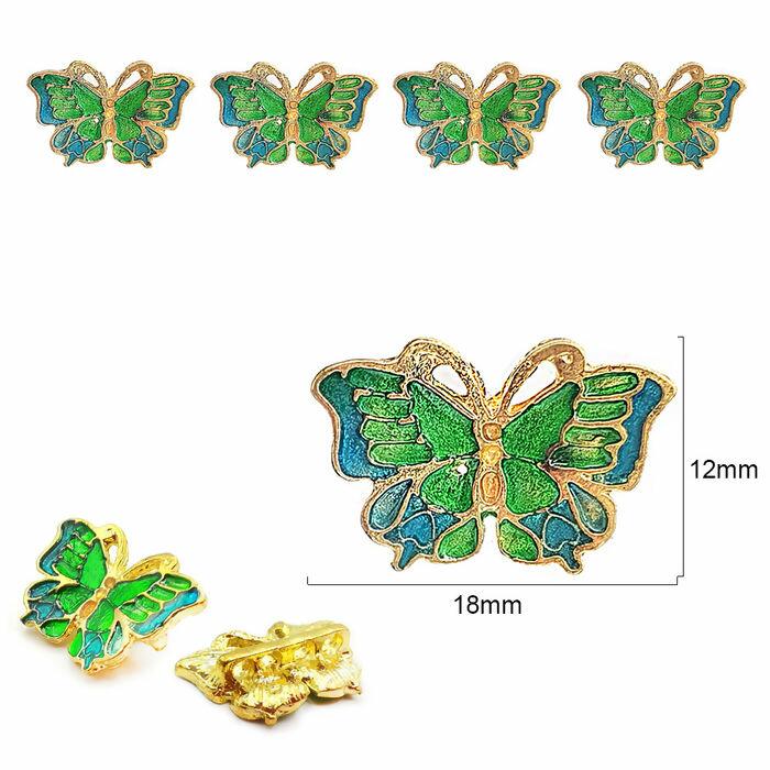 Descrição Aplique Metal Borboleta - 12mm x 18mm - Verde/ Azul/ Dourado - RO.151615
