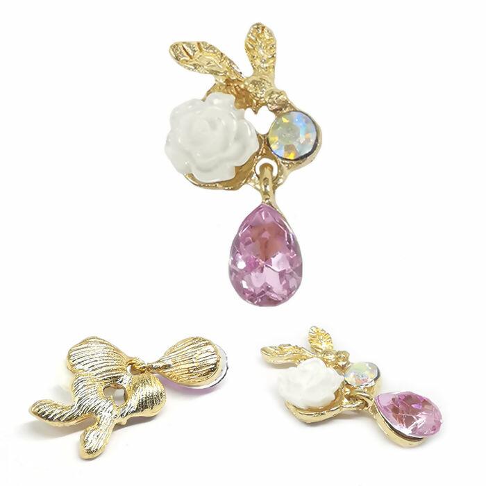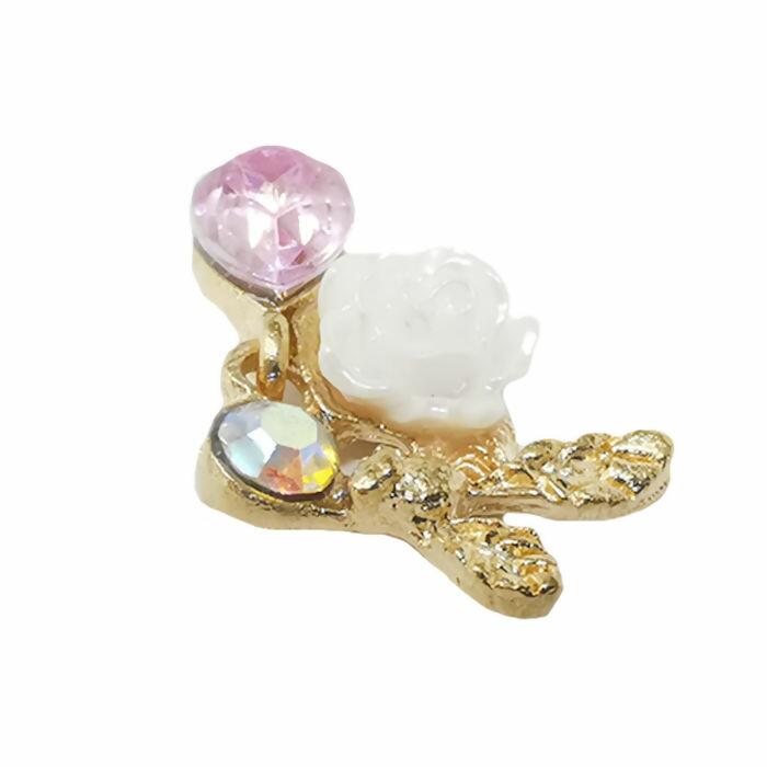 Aplique Metal e Pedraria Flor 100 unidades 24mm x 13mm RO.152031
