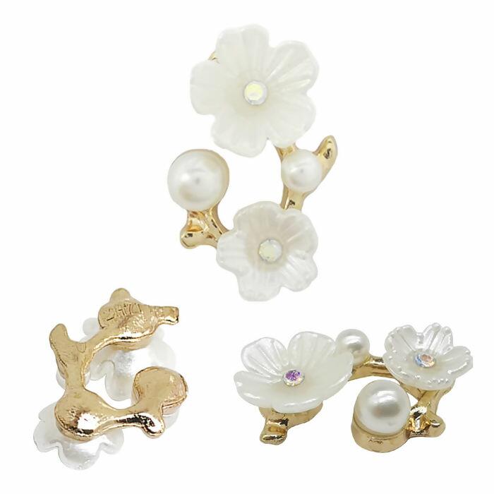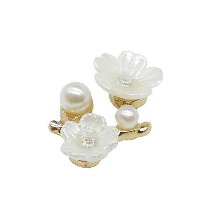 Aplique Metal e Pérola Flor 100 unidades 23mm x 14mm RO.152031