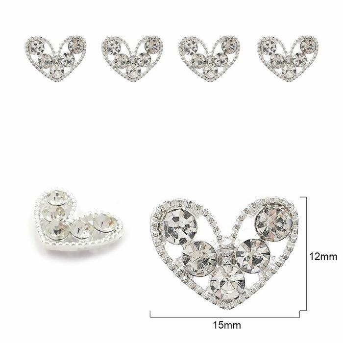 Descrição Aplique Metal Strass - Coração - 12mm x 15mm - Níquel - RO.151669