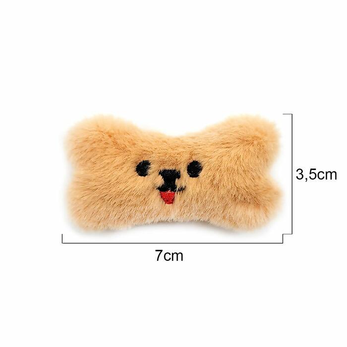 Descrição Aplique Pelúcia Cabeça de Cachorro Osso 7cm x 3,5cm Bege RO.154111