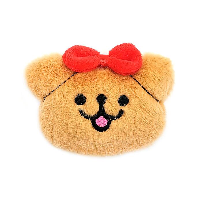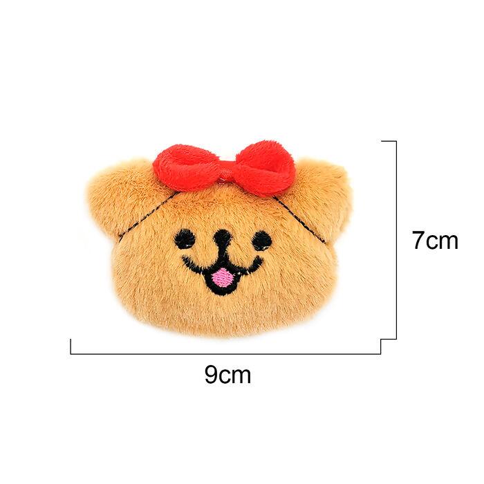 Esse aplique de pelúcia no formato de cabeça de ursinha é pura doçura! Com um lacinho vermelho aplicado no topo e expressão sorridente bordada, ele é ideal para trazer charme e delicadeza a peças artesanais, especialmente voltadas ao público infantil. Feito com pelúcia bege macia e acabamento bordado impecável.