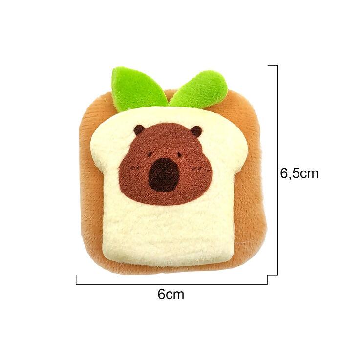 O Aplique de Pelúcia Lanche Pão Capivara traz a mistura perfeita entre fofura e originalidade. Com formato de pãozinho, carinha de capivara e folhinhas verdes em pelúcia, ele é ideal para dar vida a laços, tiaras e acessórios infantis personalizados.