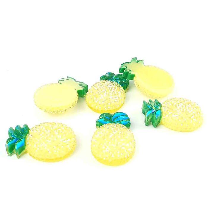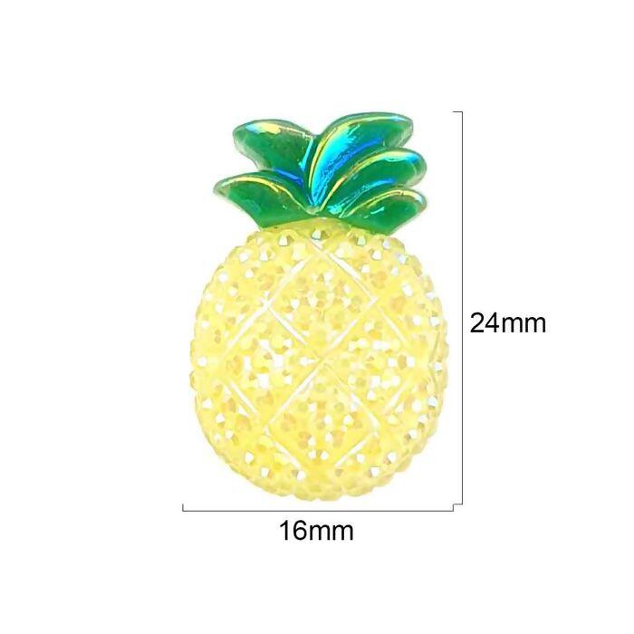 Descrição Aplique Resina - Abacaxi - 24mm x 16mm - 50 unidades - RO.152906