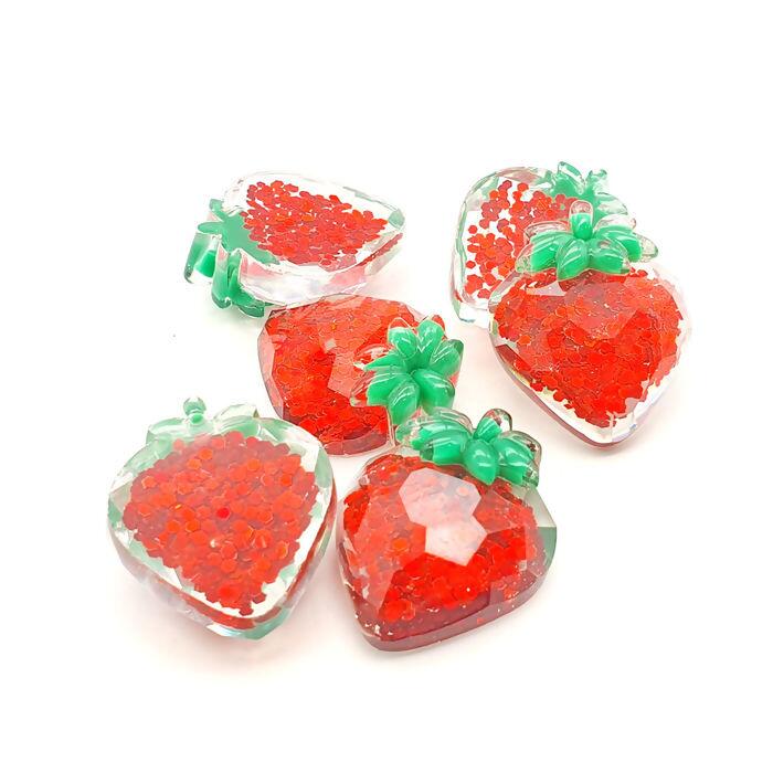 Descrição Aplique Resina - Morango - 22mm x 18mm - 50 unidades - RO.152897