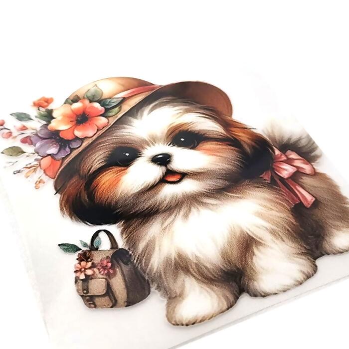 Aplique Termocolante - Cachorrinho Chapéu - 87mm x 87mm - REF-027
