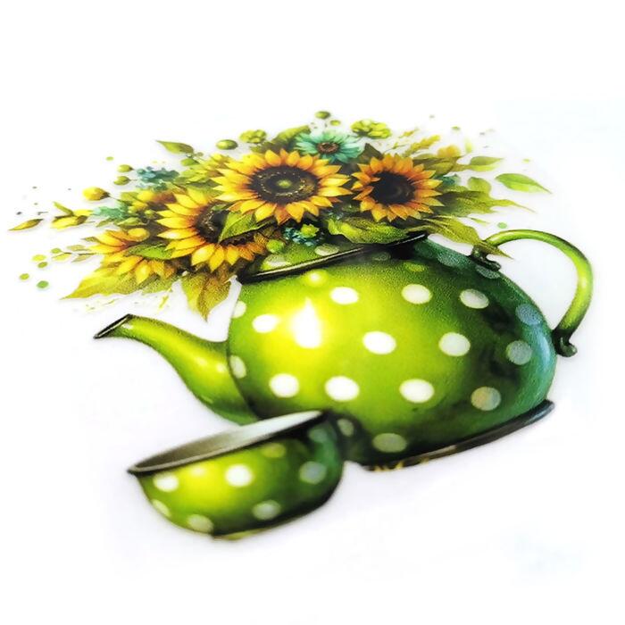 Descrição Aplique Termocolante - Chaleira Girassol - 85mm x 85mm - REF-081