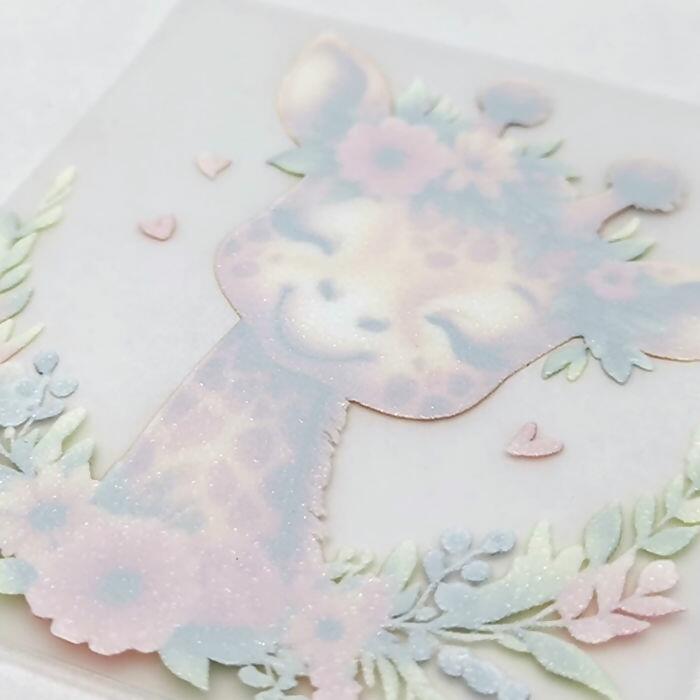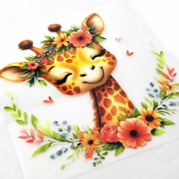 Descrição Aplique Termocolante - Girafinha Floral - 90mm x 82mm - REF-042