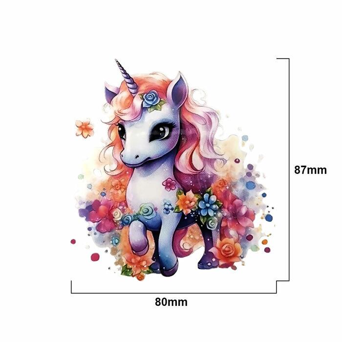 Descrição Aplique Termocolante - Unicórnio Floral - 82mm x 78mm - REF-055