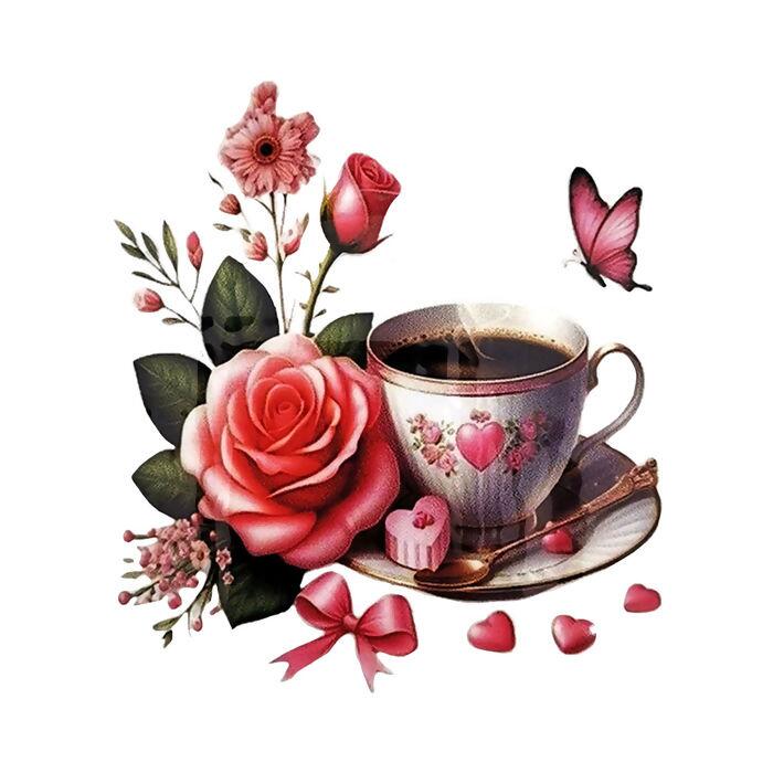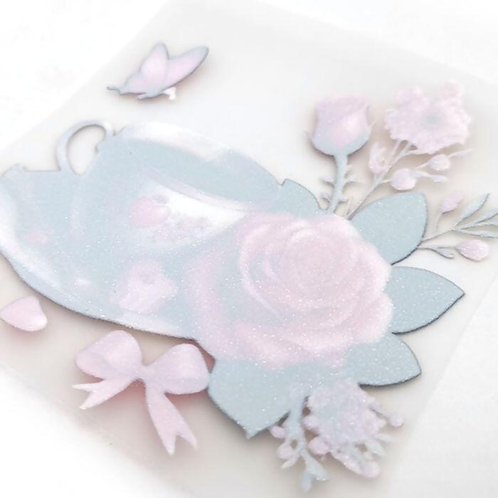 Aplique Termocolante - Xicara Floral - 88mm x 88mm - REF-077