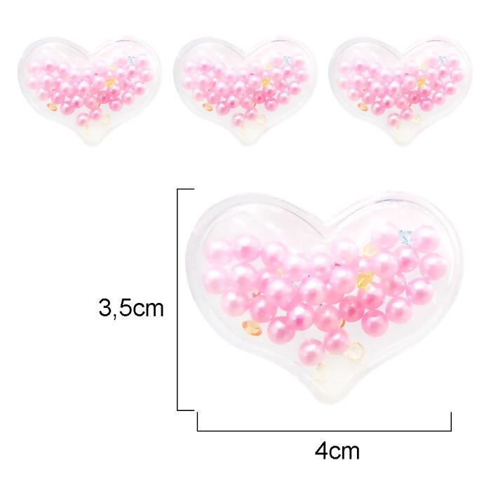 Aplique transparente - 20 unidades - Coração com pérolas e pedras - Rosa - RO.150128 - 044013