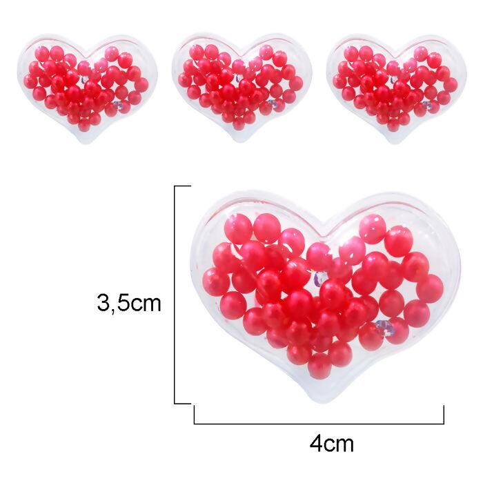 Aplique transparente - 20 unidades - Coração com pérolas e pedras - Vermelho - RO.150128 - 044010