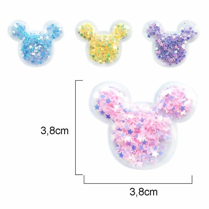 Aplique perfeito para laços, broches, tiaras, presilhas, decorações em geral. Transparente dando visibilidade para o confete colorido.