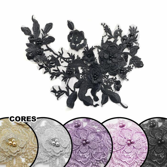 Aqui na Roma Aviamentos você encontra Aplique Tule com Flores.