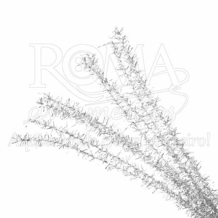 Arame em Chenille - 10 unidades - 30cm - Prata - 064548