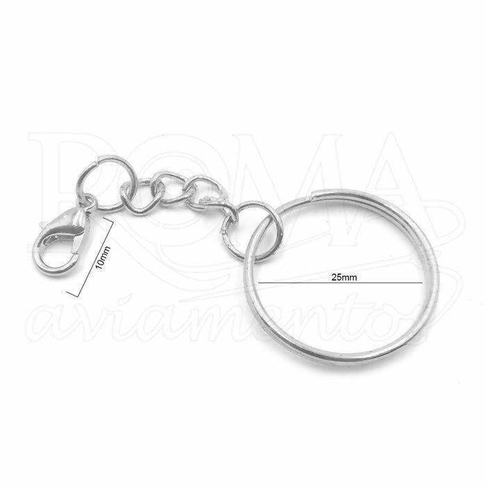 Argola de Chaveiro com Corrente - 20 unidades - 2,5cm - Níquel - ROFR.151111