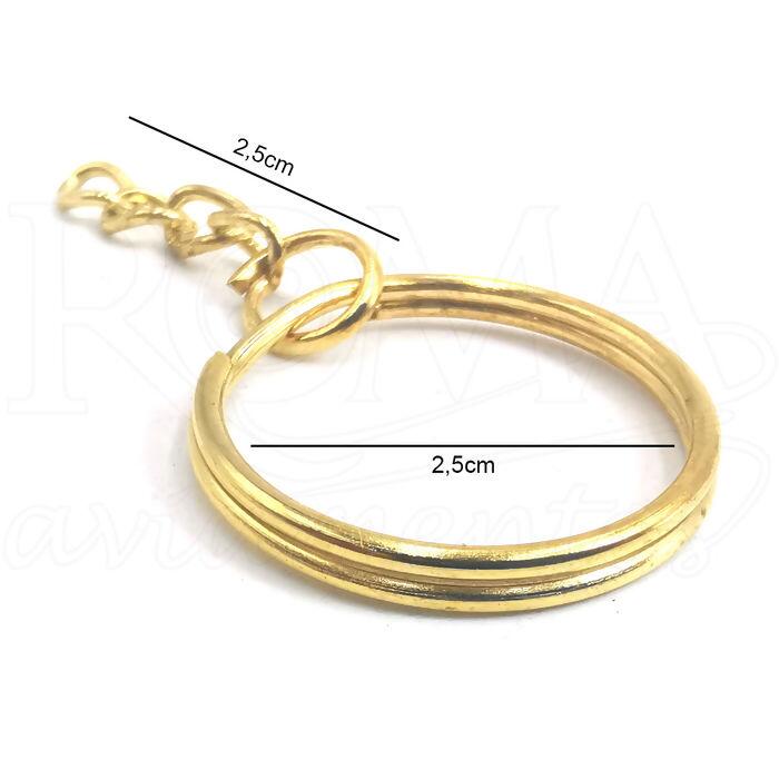 Descrição Argola de Chaveiro com Corrente - 50 unidades - 2,5cm - Dourado - ROFR.119162