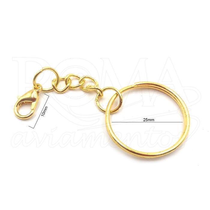 Descrição Argola de Chaveiro com Mosquetão - 100 unidades - 2,5cm - Dourado - RO.151111