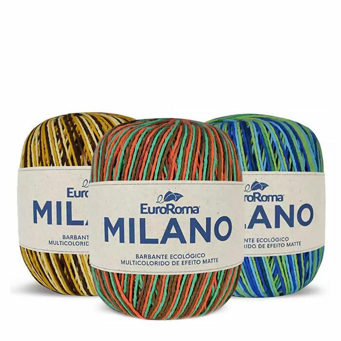 O barbante multicolorido EuroRoma Milano possui base ecológica flexível e macia, com brilho intenso e cores firmes sem deixar de ser sustentável. EuroRoma Milano é uma explosão de cores com três tons que proporcionam uma combinação perfeita para decorar e produzir peças modernas, alegres e bonitas. Além da variação de cor, as peças produzidas com EuroRoma Milano possuem toda a maciez e qualidade que você busca para seus trabalhos manuais, com a certeza de cores firmes, sem deixar de ser sustentável.