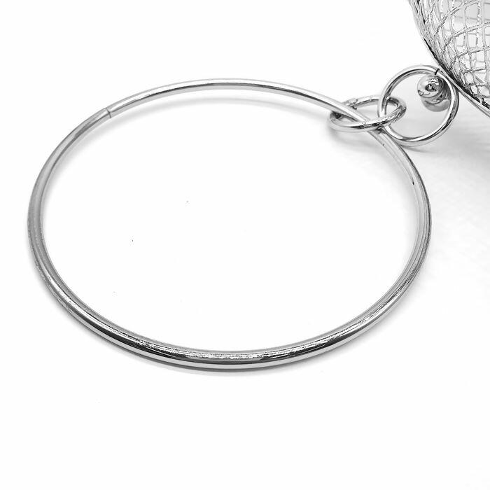 A Bolsa Metálica com Argola é o acessório ideal para quem busca criatividade e originalidade em seus projetos artesanais. Produzida em 100% ferro cromado, possui formato esférico vazado com acabamento brilhante, perfeito para personalizações, lembranças, enfeites e decorações. A argola metálica facilita a fixação e o manuseio, permitindo inúmeras possibilidades de uso.