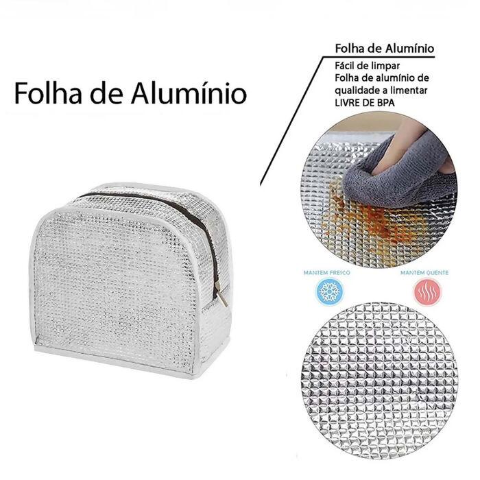 Seu revestimento interno térmico ajuda a conservar a temperatura dos alimentos por horas, enquanto o material externo é resistente e fácil de limpar. Possui alça de mão reforçada e fechamento com zíper, garantindo segurança durante o transporte. Excelente escolha para academia, trabalho, escola, viagens ou passeios.