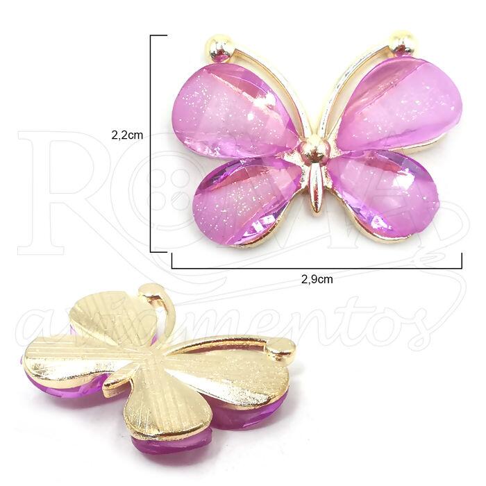 Borboleta Metal e Pedraria - 20 unidades - Borboleta - Lilás 047 - 2,9cm x 2,2cm - RO.151043