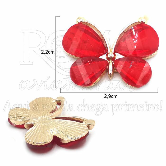 Descrição Borboleta Metal e Pedraria - 20 unidades - Borboleta - Vermelho - 2,9cm x 2,2cm - RO.151043
